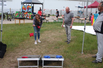 Cornhole- ein Wurfspiel mit kleinen roten und blauen Säckchen- erfreut die Besucher bei zahlreichen Veranstaltungen. Der Bürgerverein Nord und das Stadtteilmanmagement des IB laden am 1. November um 15 Uhr zu einem Cornhole-Turnier in den Stadtteiltreff Oase ein.