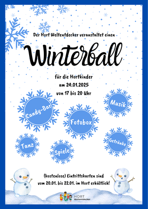 Nach einer Ideensammlung des Hort-Kinderrates im letzten Jahr, welche Veranstaltung im Hort stattfinden könnten, entstand die Idee einen Winterball zu veranstalten. Nach langer Vorbereitung war es dann am 24.1.2025 endlich soweit. Unsere Hortkinder konnten Eintrittskarten für diesen besonderen Abend erwerben. An unserem Ticketschalter bildete sich schnell eine lange Schlange, um eine der begehrten Karten zu bekommen. Wie es sich für einen echten Ball gehört, kamen die Kinder in ihren schönsten Kleidern und Anzügen. Der von pädagogischen Fachkräften und Kindern festlich geschmückte Raum, wurde mit glänzenden Kinderaugen zum Strahlen gebracht. Zur Einstimmung eröffnete unsere Theatergruppe die Veranstaltung mit einer Tanzdarbietung und wurden mit großem Applaus dafür gewürdigt. Bei cooler Musik mit Spiel und Tanz ging die Party richtig los. Großen Anklang fand auch unsere Fotobox, bei der die Kinder ihre Kreativität zeigten und tolle Bilder entstanden. Das absolute Highlight war unsere Candybar.
